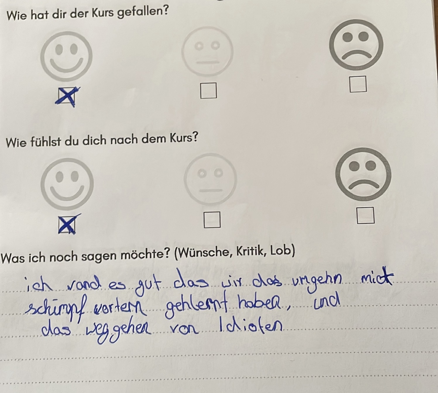 Während unserer Trainings ermutigen wir die Schüler, ihre persönlichen Stärken zu erkennen und zu fördern. Wir bieten ihnen effektive Werkzeuge und Strategien zur Stärkung ihres Selbstbewusstseins, zur Verbesserung ihrer Kommunikationsfähigkeiten und zur Bewältigung von Mobbing, Ängsten und Stress. Durch interaktive Übungen, Rollenspiele und Diskussionen schaffen wir eine unterstützende Lernumgebung, in der die Schüler ihre individuellen Herausforderungen angehen und ihre persönliche Entwicklung vorantreiben können.